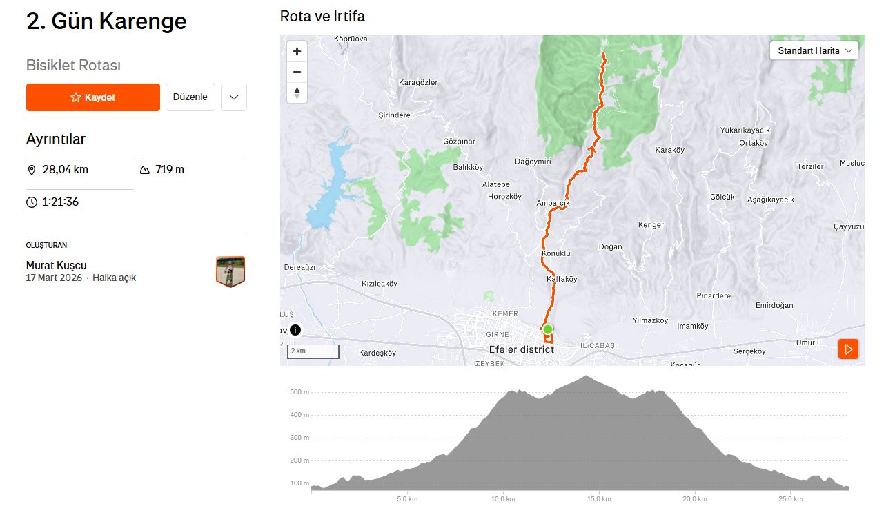 • Şahnalı-Dalama rotasında toprak yol bulunduğundan 3. gün turu mtb ve tur bisikletleri için uygundur.